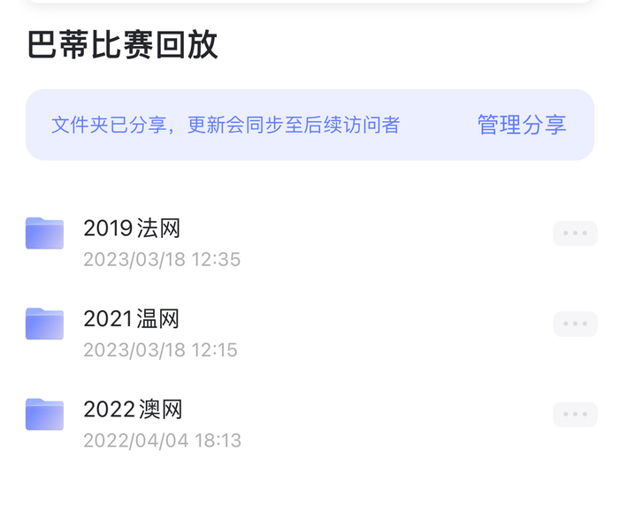有人问要巴蒂大满贯3冠比赛回放,整理了一下顺带发出来,需要的自己去拿。关键词依旧放在。以后就不整理以前的比赛了,容量不够多得留着存集锦。