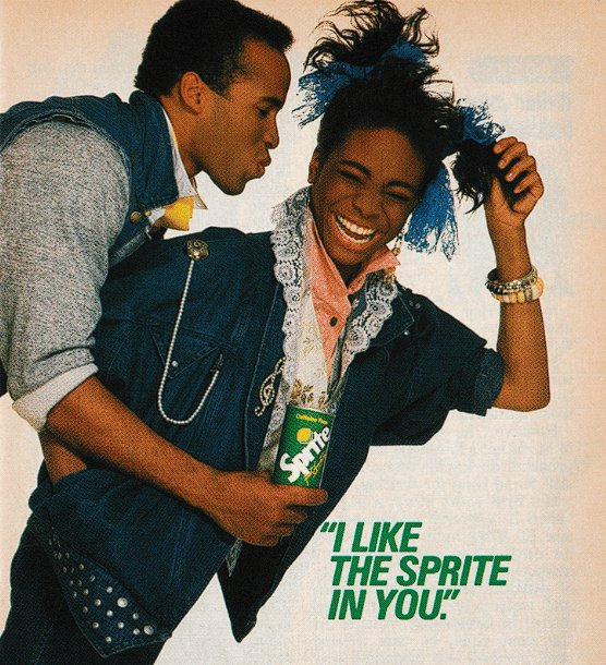 因此,从品牌发展的早期开始,雪碧在营销资源的配置上,就一直倾向都市、潮流等场景。上世纪80年代,雪碧推出了「I Like the Sprite in You」(我喜欢你身上的雪碧气质),把品牌融入都市青年的生活。