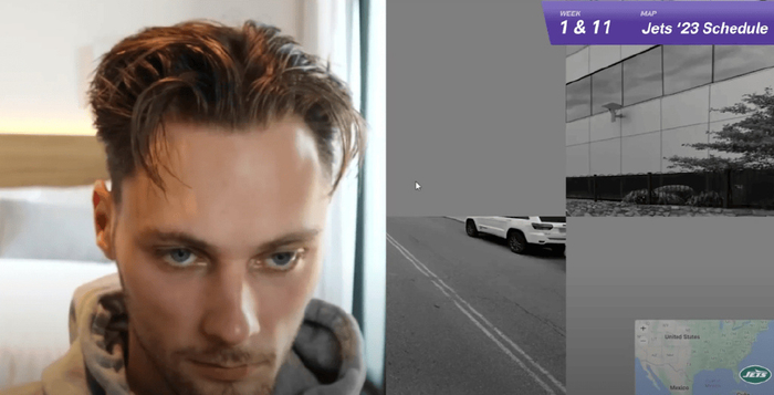 2023年他曾与NFL球队纽约喷气机进行过一次合作,挑战用时0.1秒观察街景图,来猜出喷气机队对手的主场。
