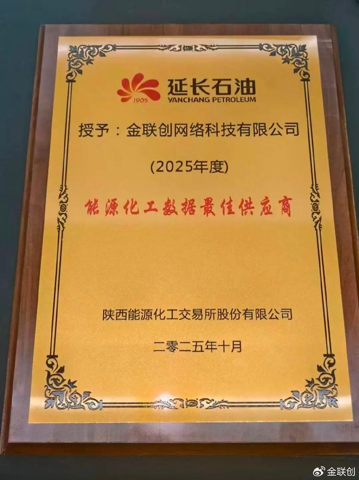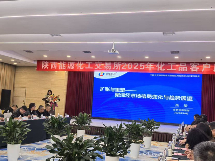 2025年10月31日,由陕西能源化工交易所举办的“2025年化工品客户座谈会”在西安高新商务酒店隆重举行。作为中国大宗商品数据及智能应用服务解决方案引领者,金联创网络科技有限公司凭借其在能源化工领域深厚的数据积累与专业研究能力,荣获“能源化工数据最佳供应商”奖项,并分享了对聚烯烃市场的深度解读,获得了与会者的高度关注与认可。