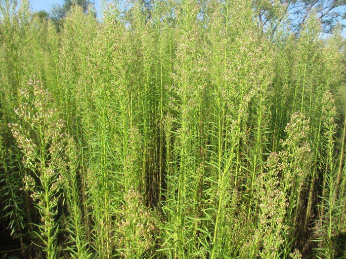 小蓬草它的植株长得笔直,长得也有1米多高,它是一种一年生的植物,到了秋天的时候,就干枯掉了。