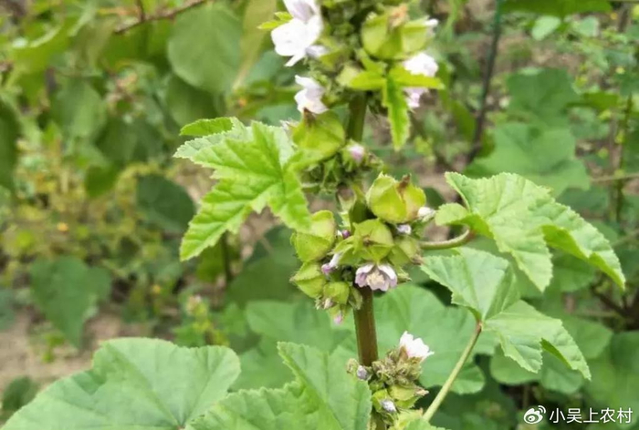 冬葵菜,它是锦葵科锦葵属一年生的草本植物,它分支较多,茎上面长有绒毛,叶子呈圆形,叶片三角状圆形,边缘有锯齿,两面没有毛,叶柄比较瘦弱,托叶卵状披针形,也有一些绒毛,它的花比较小,单生或者是簇生于叶腋,是白色的,它的花期在每年的6到9月,它的果扁球形,种子肾形,暗黑色的。