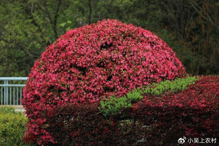然而,红花檵木的叶子有个有趣的特性,它的叶色会受温度影响,出现一定的返绿现象。当气温较低时,叶子的红色更为浓郁;随着温度升高,部分叶片会逐渐泛起绿意,这是它在自然环境中的一种正常生理变化,也为其增添了一份别样的动态美感。