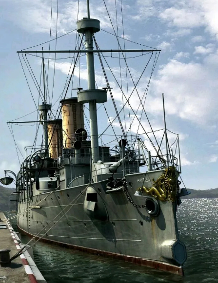 海圻号的来历:清朝自从被西方打开了国门后,也愈发开始重视起海军的建设来。在其后的几十年中,清政府通过洋务运动,不断的采买、引进外国技术逐步建立了一支号称亚洲最强的海军舰队。不过,这种虚幻的荣光很快被残酷的事实打破,1883年中法战争,福建水师全军覆没;1894年,北洋水师也在甲午战争中重蹈覆辙。遭遇沉重打击后,意识到现代海军重要性的清政府顶着割地赔款的巨大经济压力开启了第二轮购舰计划以重整海防。“海圻”号巡洋舰就是在这个历史背景下,进入了中国人的视野。