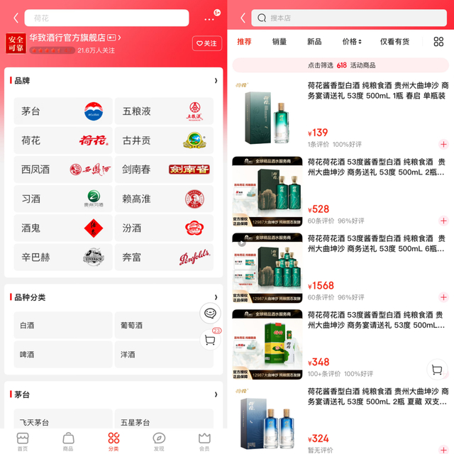 市场调研显示,这些价格从几十元到数百元不等的 "山寨荷花",正以惊人的速度蚕食正品市场。在电商平台搜索 "荷花酒",跳出的商品中大量来自非授权厂商,部分侵权产品月销量甚至高于正品。