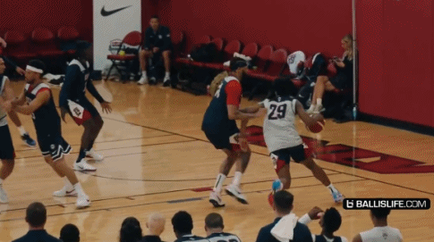去年美国国家队的训练营,弗拉格入选了陪练队。他的队友都是在NBA已经崭露头角的年轻人,他的对手则是詹姆斯、库里、杜兰特、浓眉这样的超级巨星。在一场对抗赛中,美国队1分险胜陪练队,而弗拉格成为全场最大亮点。
