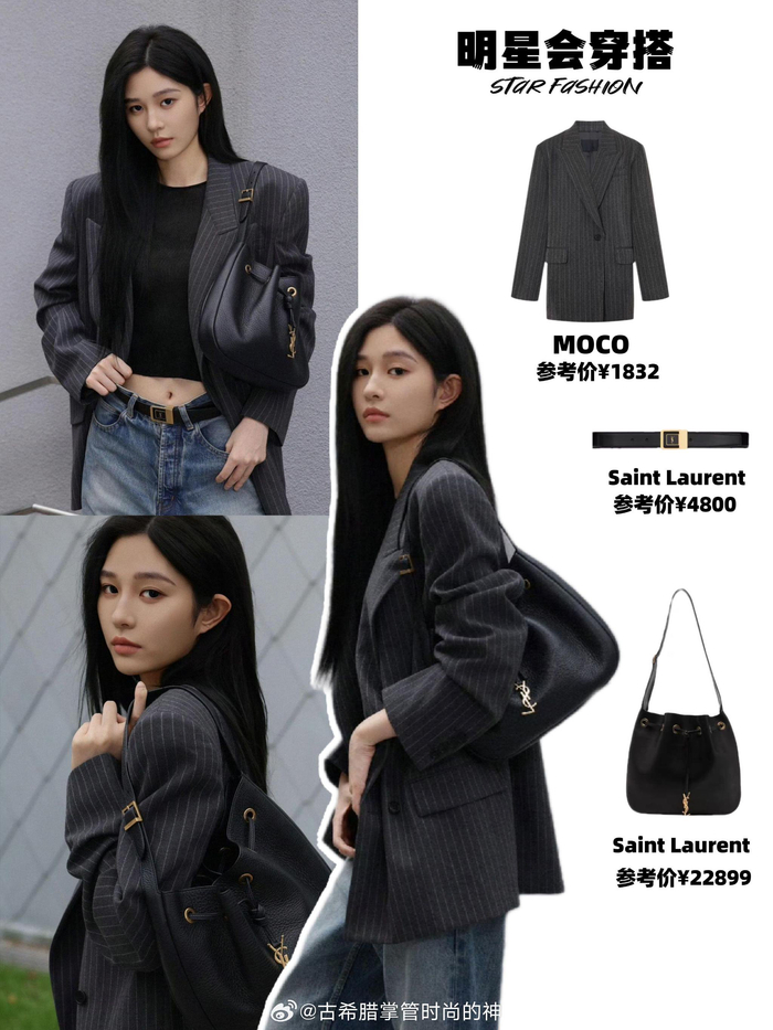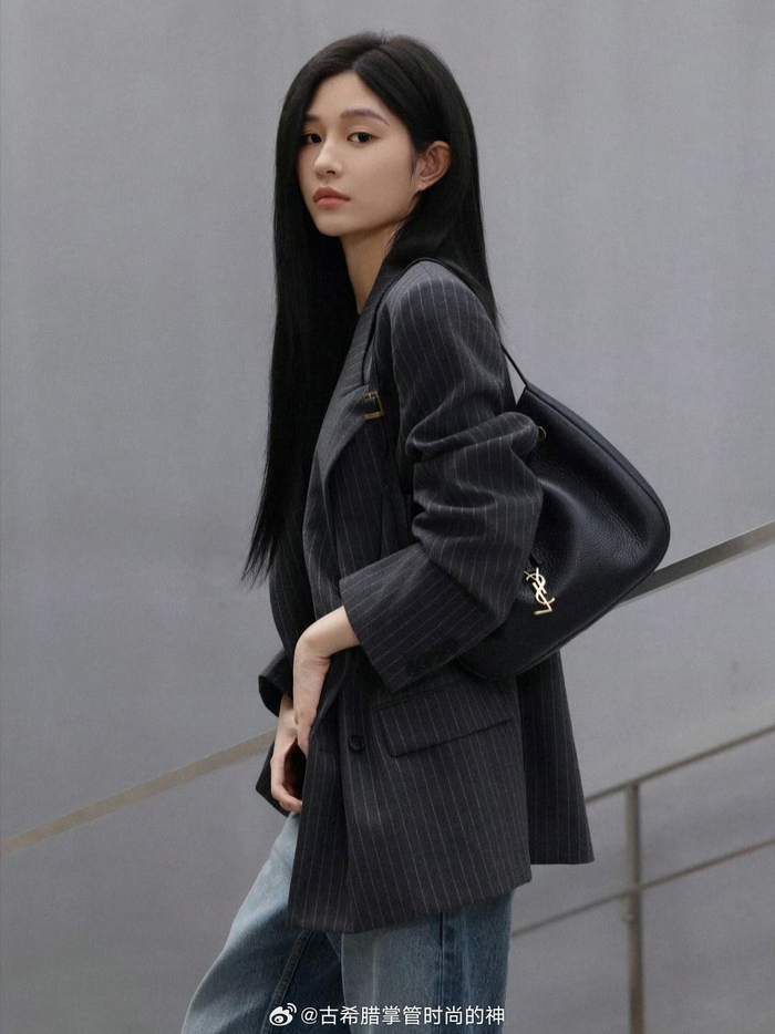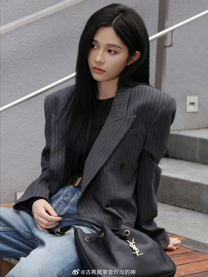 王奕的西装魅力穿搭,随性中带点酷?@SNH48-王奕 这套造型简约又高级!宽松的条纹西装搭配Saint Laurent经典包款简洁却充满细节感轻松打造出一种不费力的时尚感~