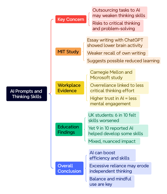 一些专家担心,将这类任务外包给AI,意味着你的大脑运作减少,甚至可能损害你的批判性思维和解决问题的能力。