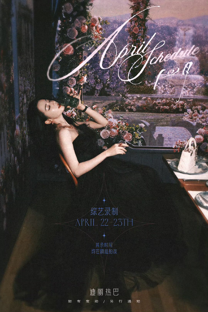 迪丽热巴4月行程图来啦,出综艺录制外均在剧组拍戏,新的一个月一切顺利!期待热巴@Dear-迪丽热巴