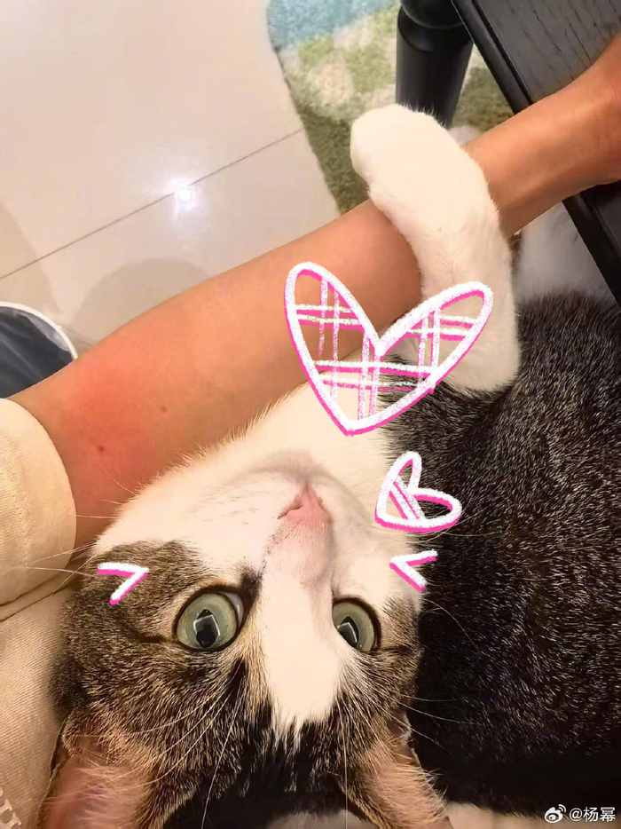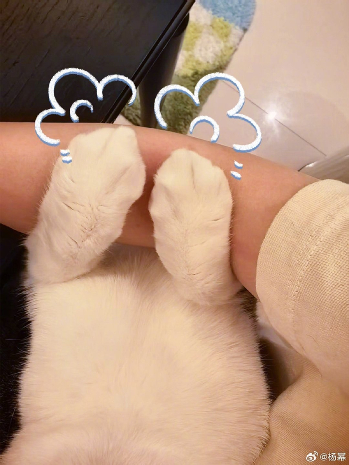 杨幂发博营业晒刮痧小猫,记录幸福瞬间,不知道该羡慕谁了