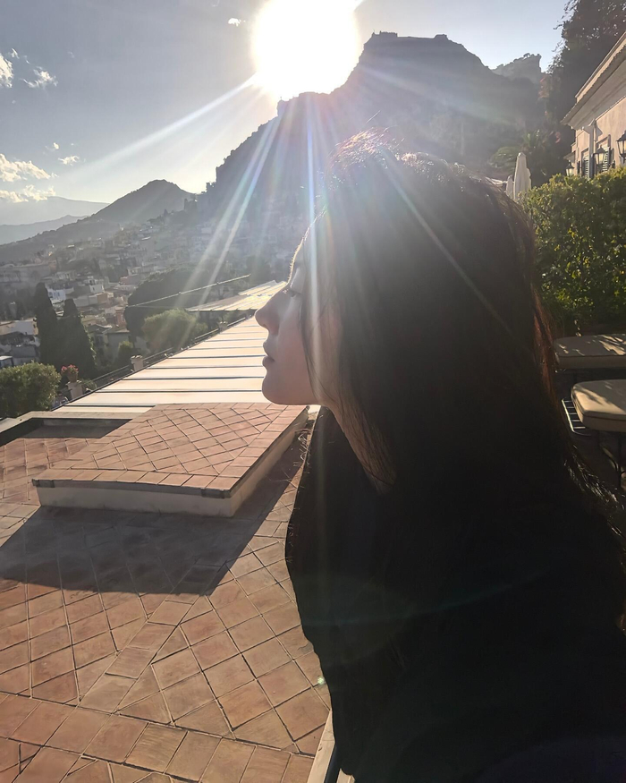 刘亦菲西西里岛旅行明信片,整个人透着自信松弛的美