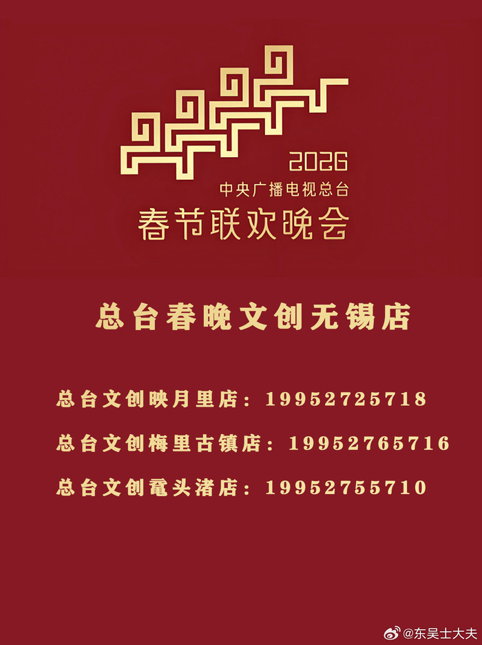 总台春晚文创品官方发布了几款2026马年春晚文创品,公布的可购买线下门店包含无锡三个地方,分别是惠山古镇映月里、鼋头渚景区和梅里古镇。