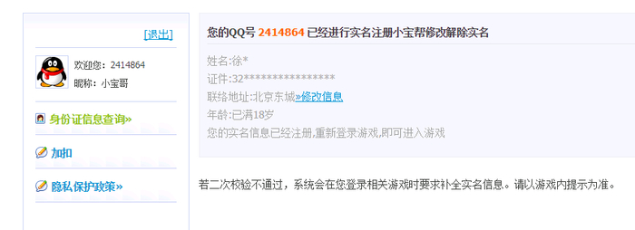 (1)启用健康系统后,所有召唤师的游戏账号都会默认接受公安系统实名校验,以确认相关身份信息的真实有效,凡通过校验,确认为未成年人的游戏账号将纳入防沉迷健康系统,未通过校验的游戏账号将被要求补全信息供再次校验,否则将无法进入游戏。