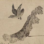 《秋山行旅图》王渊 元一主一仆骑驴穿秋林,远空中凫雁往南飞。怎一个淡彻清萧之秋。台北故宫藏