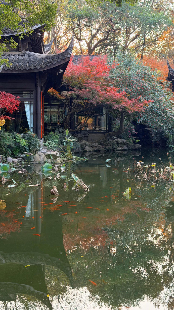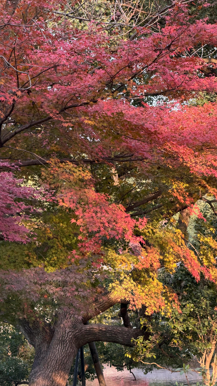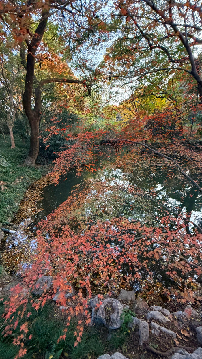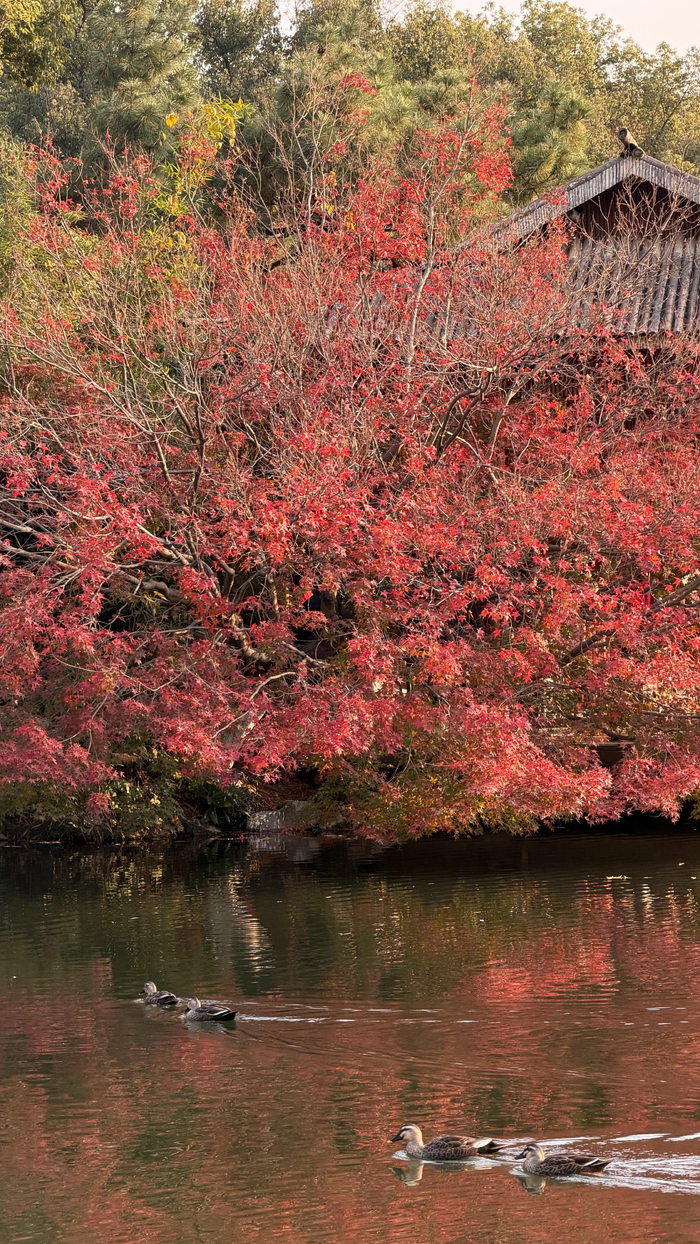 花港观鱼 丨 杭州红叶季西湖花港观鱼区域 鸡爪槭、红枫、羽毛枫 三品种枫叶竞相盛放,层叠如丹红水浪一波又一波 光彩溢目