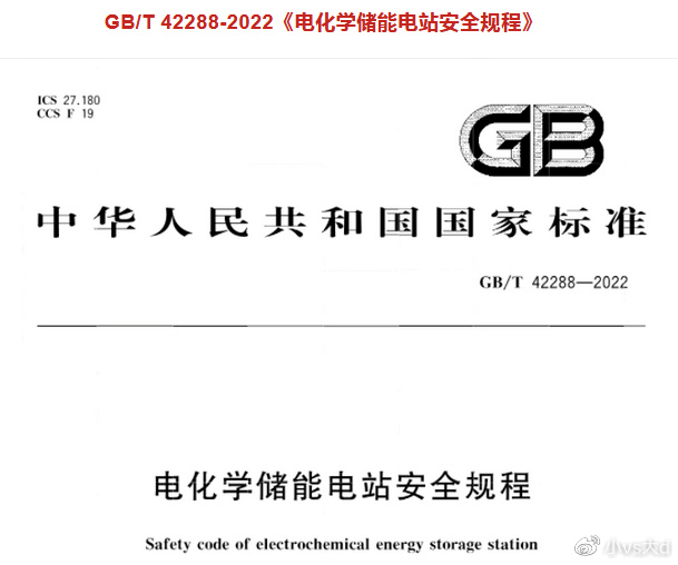 国家标准GB/T 42288-2022《电化学储能电站安全规程》由市场监管总局(标准委)批准正式发布。文件将于2023年7月1日起正式实施。