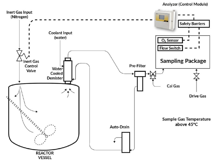 系统内的氧气水平应持续测量,并作为系统的一部分,确保其低于混合物的最低氧浓度。