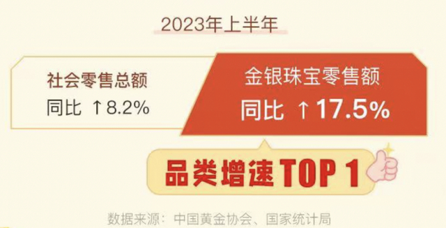 因此,在这样的大背景下,攒点无风险资产真的非常重要,这可能也用不着所长多说,聪明的老百姓比谁都清楚“乱世买黄金”这句话。2023H1,国内社零总额恢复不及预期,在2022同期低基数下仅录得8.2%的同比增长,但金银珠宝零售额却实现了17.5%的大幅增长,在各类增速中录得第一。