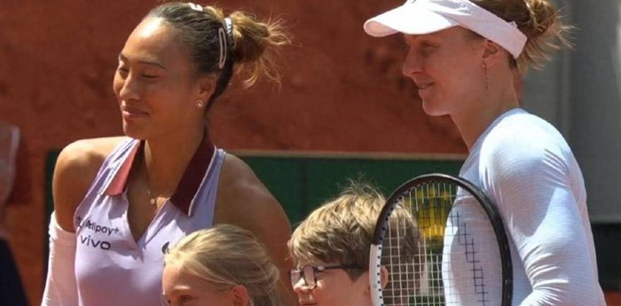 萨姆索诺娃一上场就亮出“搏杀战术”,手臂缠满绷带却把球速轰到180公里/小时以上。 郑钦文首盘第7局惨遭破发,关键时刻她突然申请换拍。戏剧性一幕来了:新球拍刚上手,她立刻回破对手发球局! 现场解说惊呼:“这简直是武侠片里的换刀剧情! ”