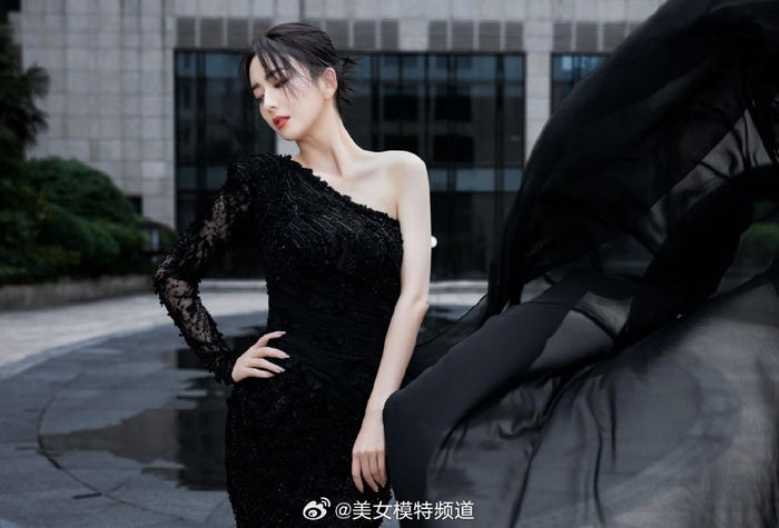 佟丽娅出席活动写真 黑色礼服裙高贵优雅