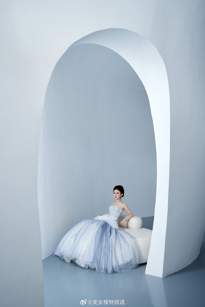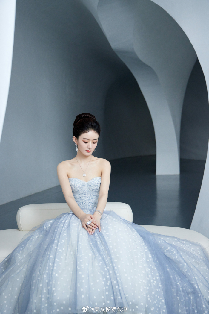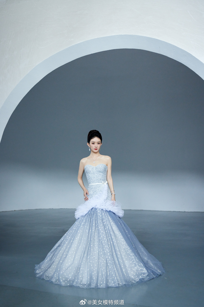赵丽颖星星薄纱露背长裙