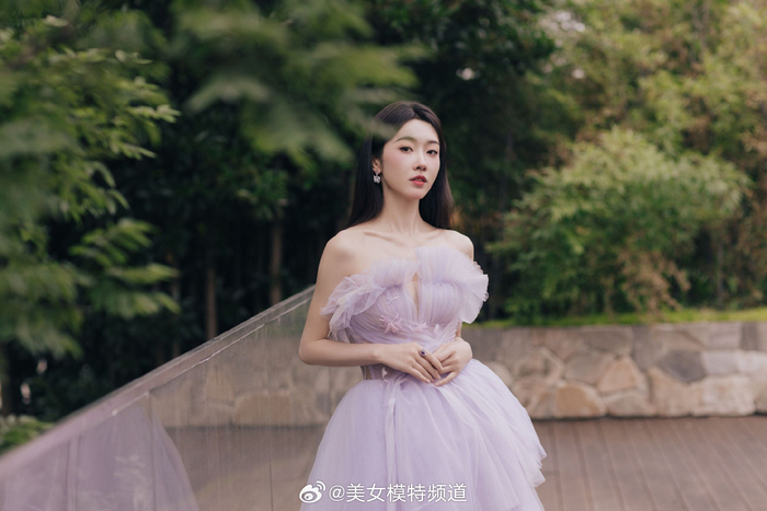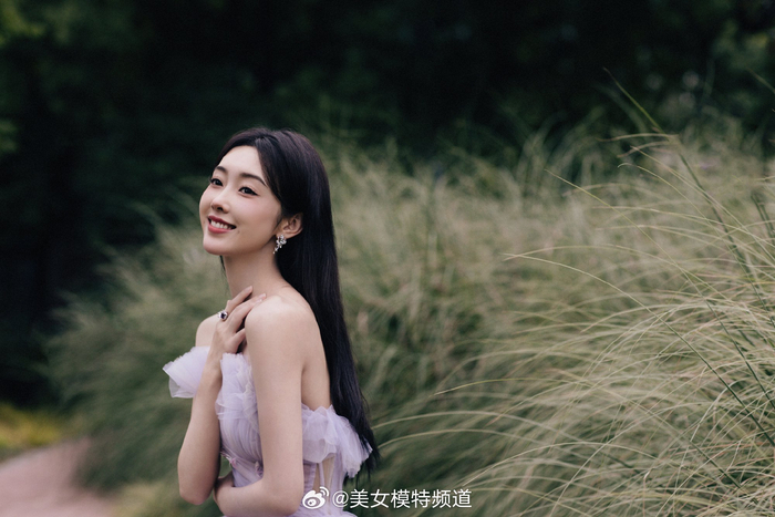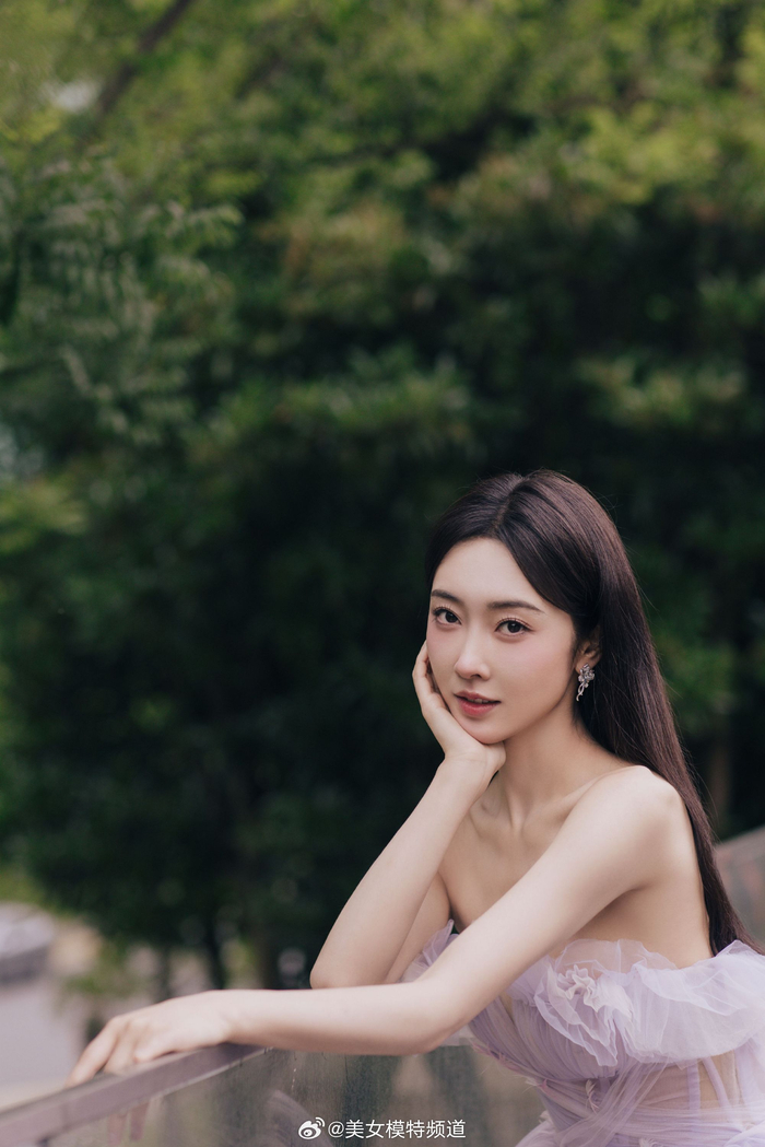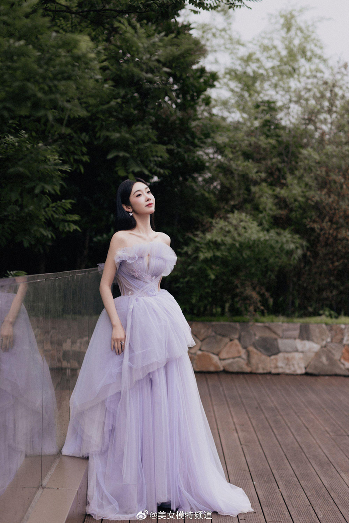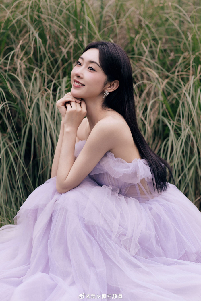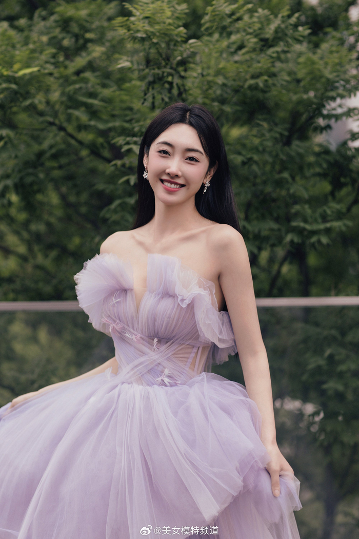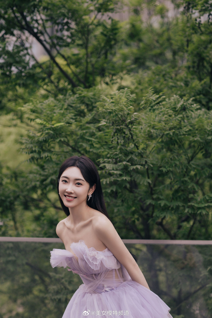宣璐一袭淡粉色纱裙轻盈柔美纯净