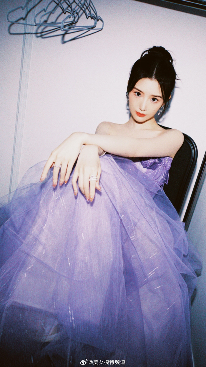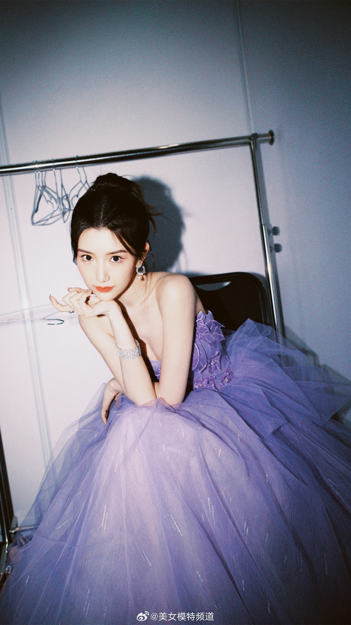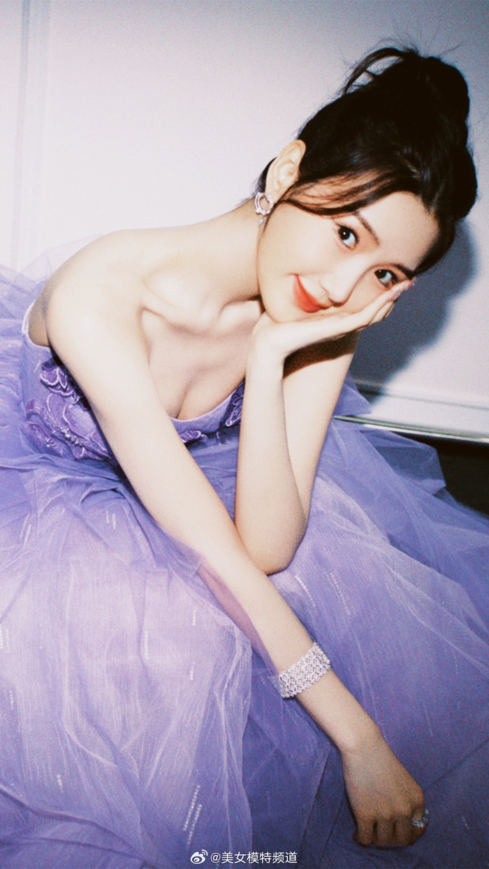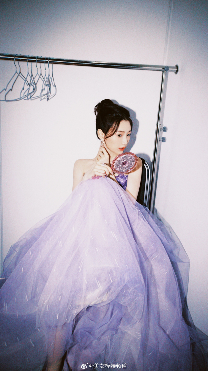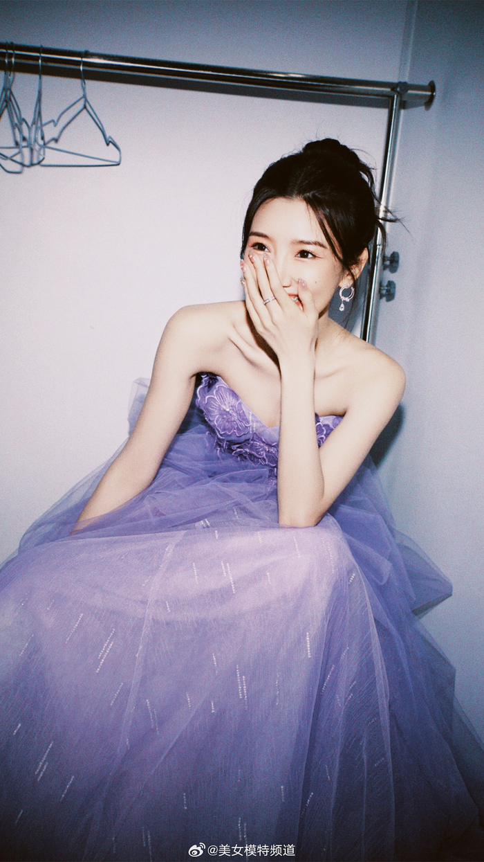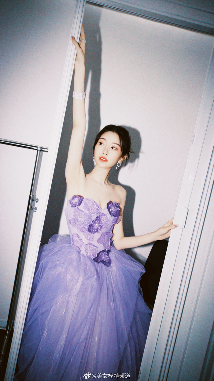 毛晓彤一袭紫色抹胸纱裙优雅灵动