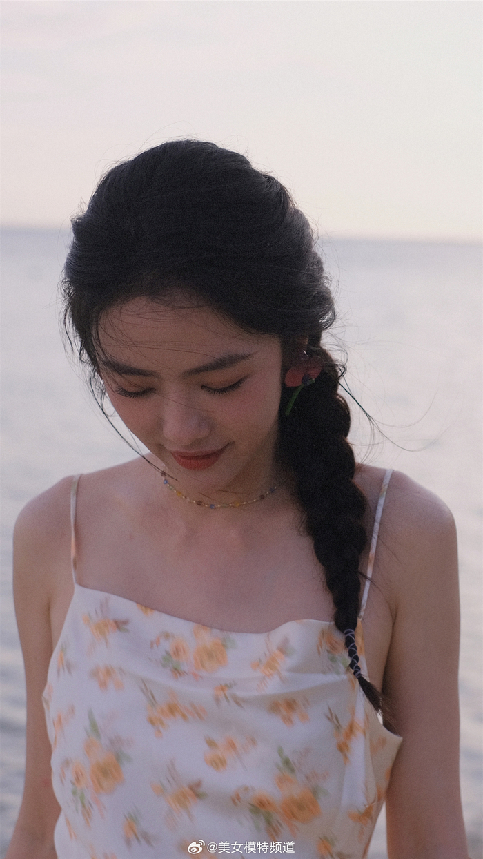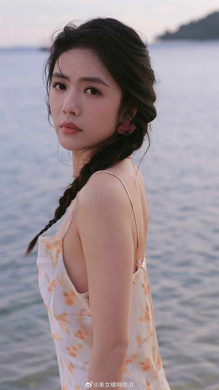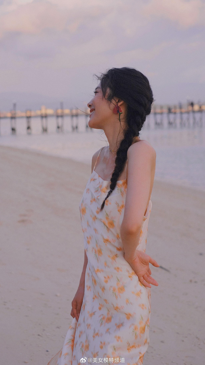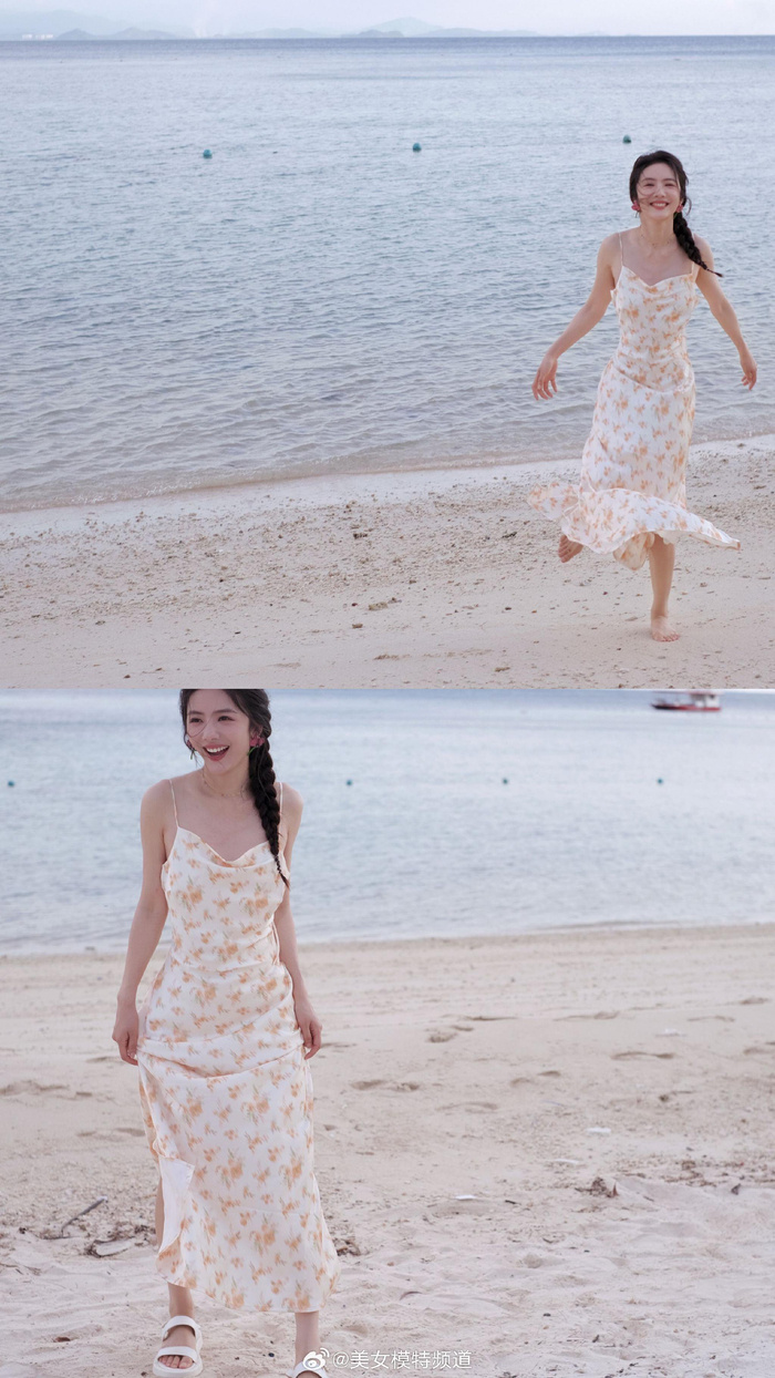 蔡文静马尾碎花裙海边大片