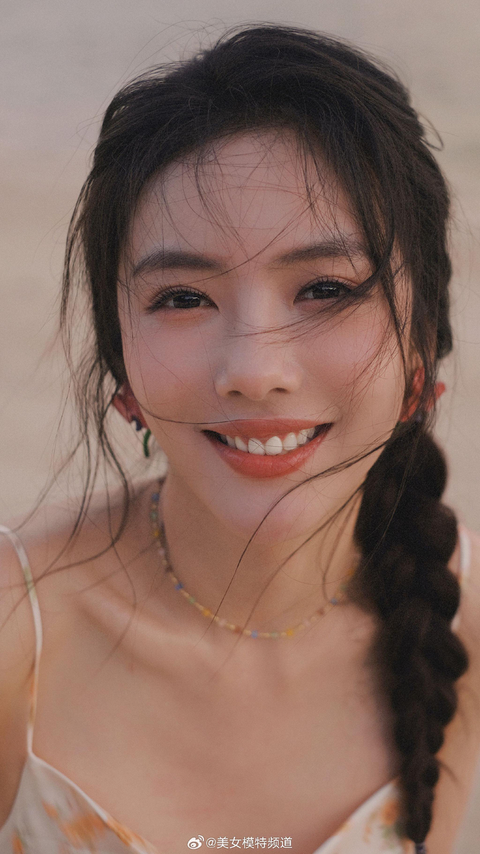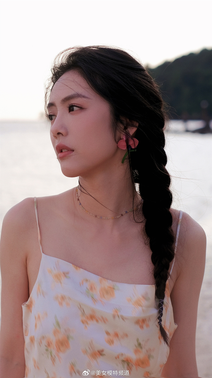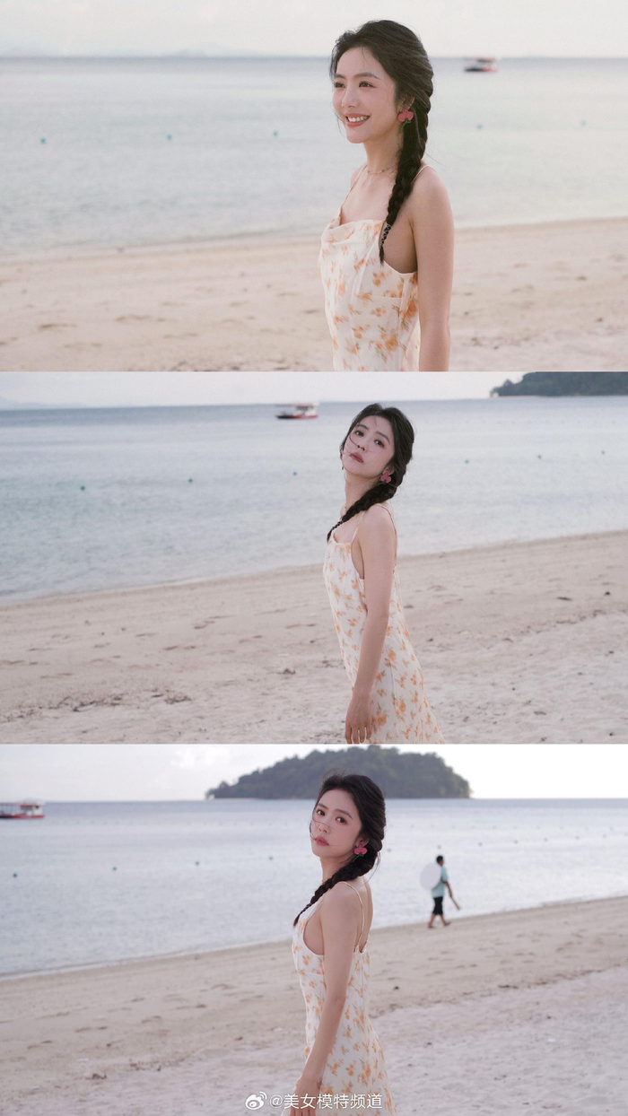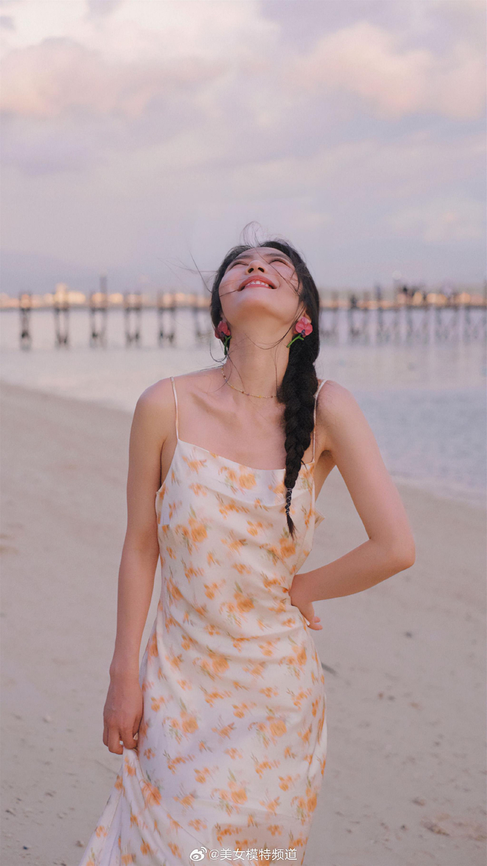 蔡文静马尾碎花裙海边大片