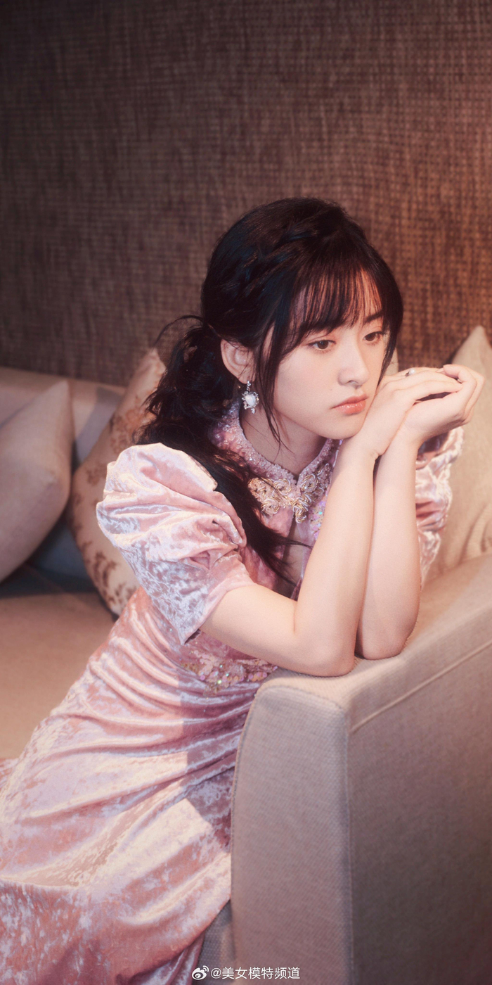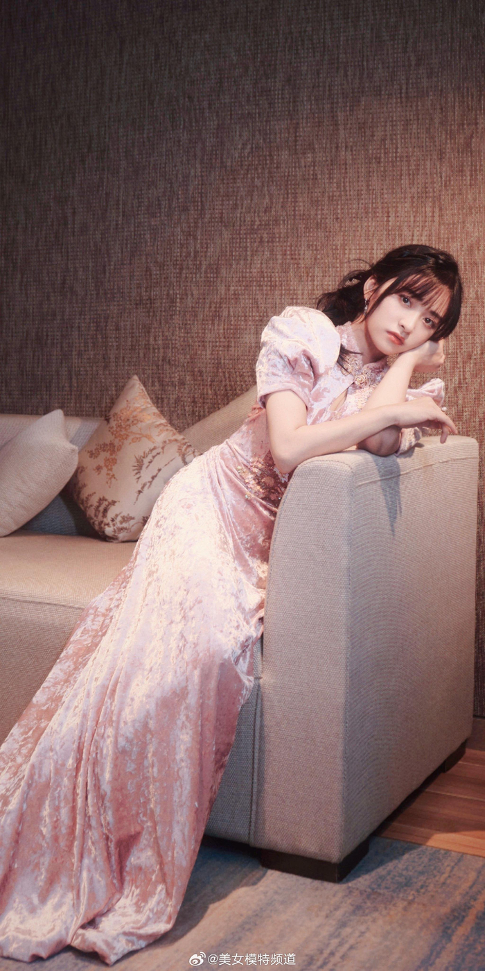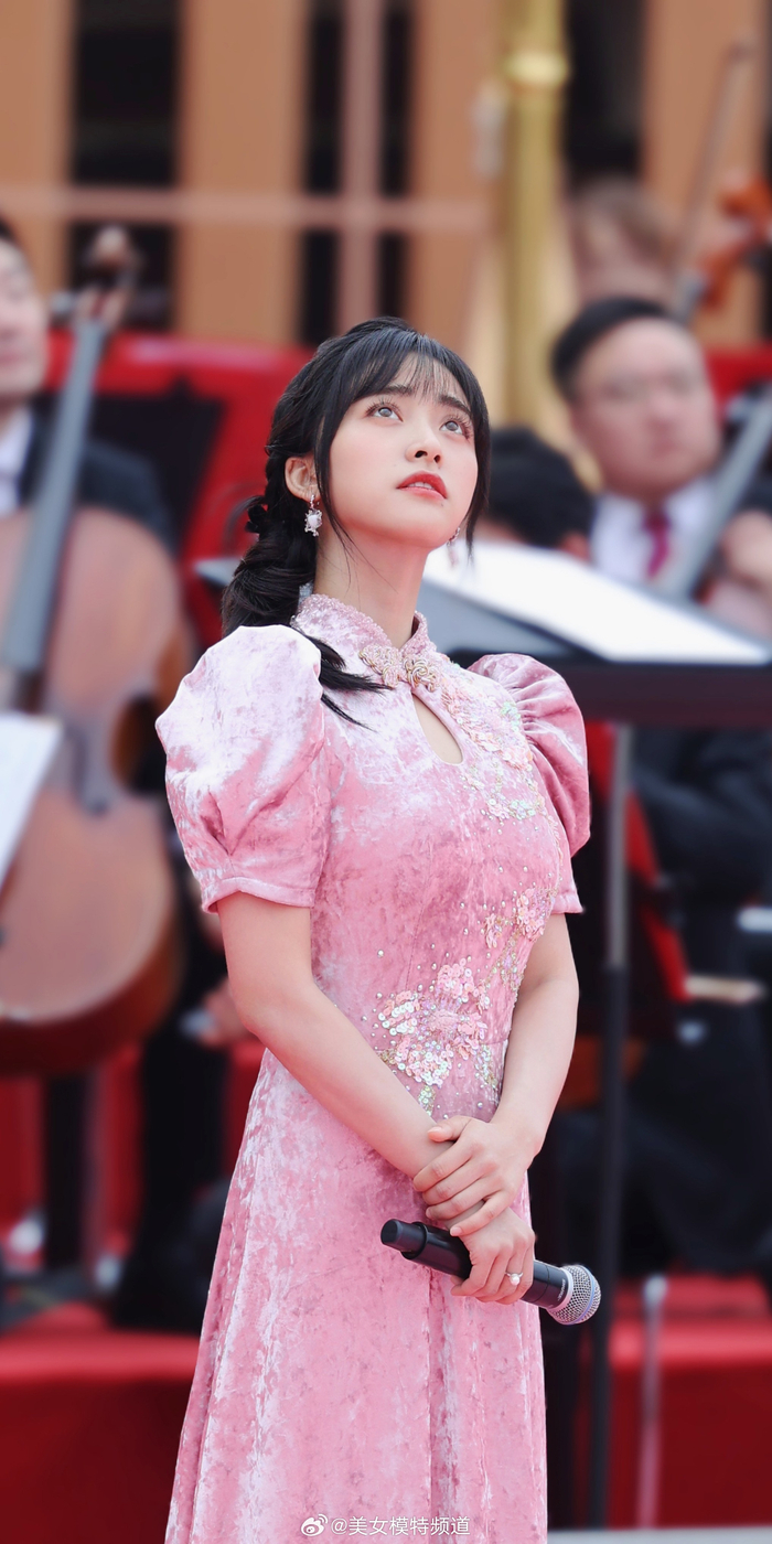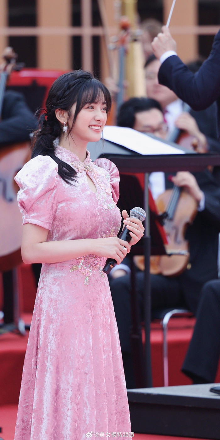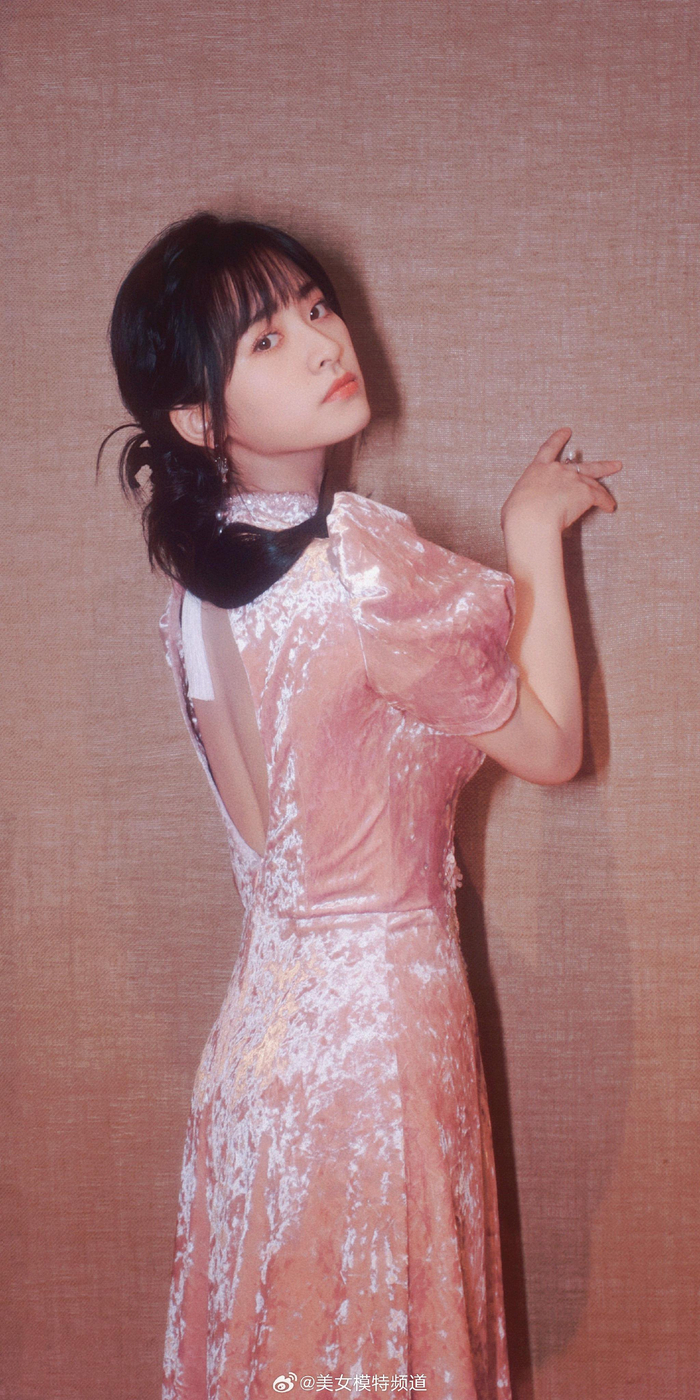 沈月粉色露背裙舞台造型