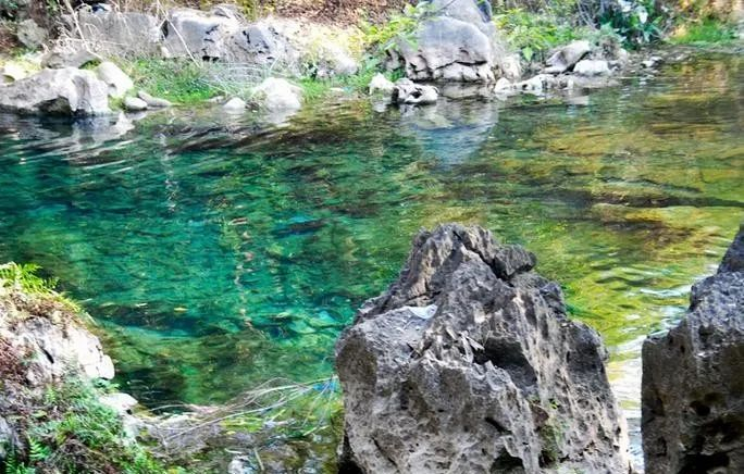 灵水是一个天然泉水湖,湖中九股清泉,潺潺突涌,湖水终年清澈见底,像是九寨沟,却又不是九寨沟。风景和人情绝对是值得一去的好地方,若是骑行的到此,便更加难忘。在灵水附近还有一条夜市小吃街,骑行到此,可以选择留宿一晚,逛夜市,吃小吃。