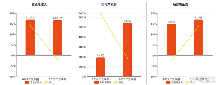公司营业总收入为60.01亿元,较去年同报告期营业总收入减少1.09亿元,同比较去年同期下降1.79%。归母净利润为4.15亿元。经营活动现金净流入为8.36亿元。