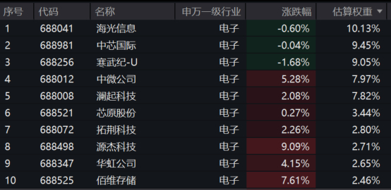 【科创芯片50ETF(588750)标的指数前十大成分股】