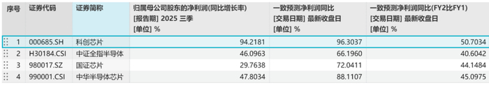 科创芯片50ETF(588750)标的指数2025年前三季度净利润增速高达94%,2025年全年预计归母净利润增速高达96%,大幅领先于同类,成长性更强!