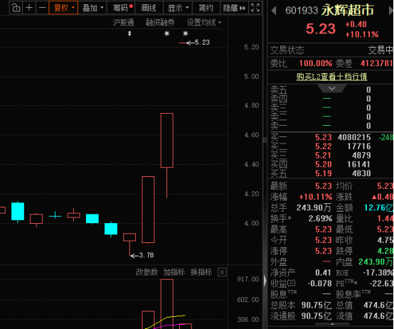 12月10日早盘,永辉超市(601933)开盘一字涨停,午间收盘封板仍超400万手,资金超21亿元。对于股价异动,永辉超市表示,目前生产经营活动正常,稳步有序进行门店调改,内外部经营环境未发生重大变化,不存在应披露而未披露的重大事项。