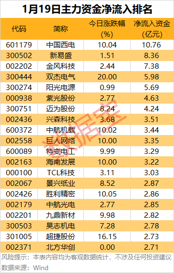 中国西电主力资金净流入10.76亿元,居首。消息面上,国家能源局1月17日宣布,2025年我国全社会用电量历史性突破10万亿千瓦时,达到10.4万亿千瓦时,同比增长5%。