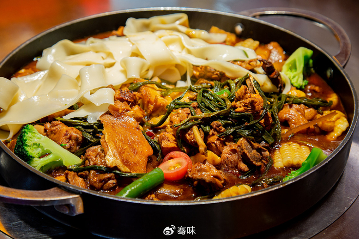 在菜单上提示顾客点菜分5步:第1步点炒鸡(即上文中3种炒鸡4种口味);第2步点配菜,配菜主推:鸡胗+干豆角,贡菜+千页豆腐,花甲+大青虾;第3步点前菜,主要就是一些小吃,提高客单。例如:拌面筋,野菜丸,小油条,小酥肉。如果经常关注品牌餐饮的朋友可能会发现,小酥肉是很多店必备的小吃,卖得也不错;第4步点饮品,主推小吊梨汤,慢熬3小时;第5步点主食,主推皮带面(类似山西裤带面,换了个名字),这与大盘鸡和拉条子的搭配很像。