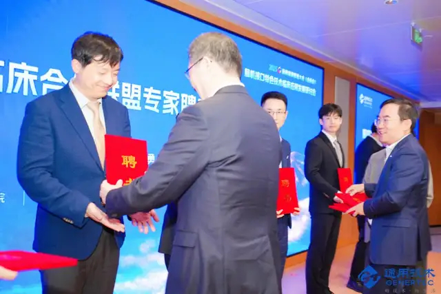 会上,“脑机接口联合创新与多中心临床合作联盟”正式成立,直指脑机接口技术商业化和典型应用场景搭建。由通用技术中国医药,通用健康康复科全国医学中心,术理创新,北京天坛医院,海军军医大学第一附属医院,厦门大学附属翔安医院,复旦大学附属儿科医院,上海通用术理智慧医疗脑科学研究院等代表共同开启启动仪式。中国医药董事长、党委书记杨光为“脑机接口联合创新与多中心临床合作联盟”的专家颁发聘书。