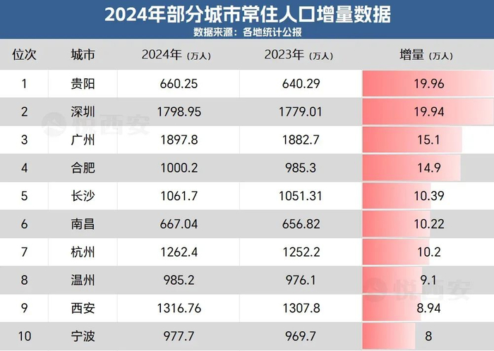 比如,作为中西部非强省会的贵阳,竟然超过深圳,成为全国人口增量第一城。