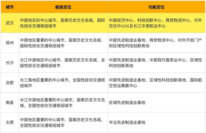 城市功能为,中部先进制造业基地、商贸物流中心、对外开放门户和区域性科技创新高地。
