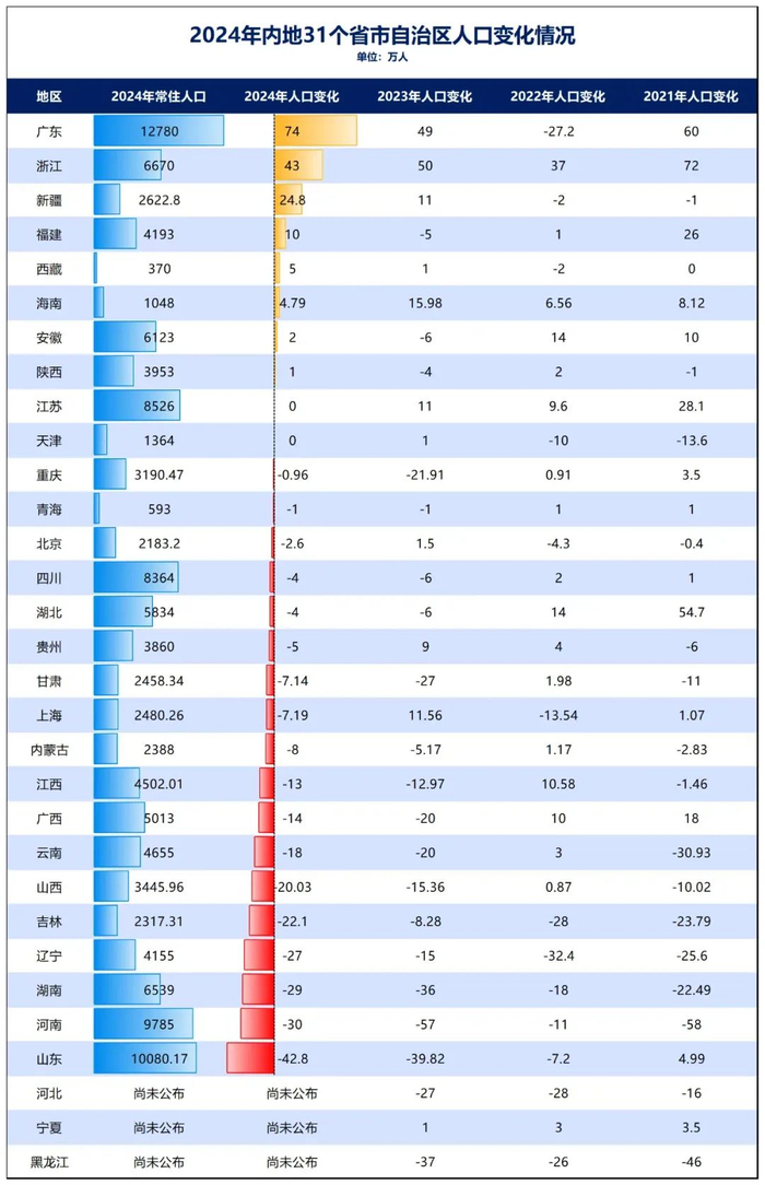 各大城市2024年人口增长数据,基本上都公布了。