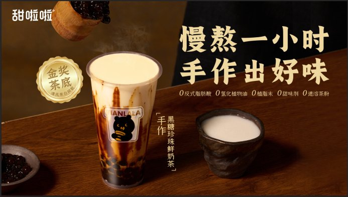 12月12日,甜啦啦推出手作黑糖珍珠鲜奶茶,新品采用“手作慢熬”工艺,历经70分钟精心熬制,确保每一颗珍珠冷热皆不硬芯。茶底选用金奖茶底茉莉初露,融合甄选奶源,茶香、花香、奶香与黑糖香相互交织,层次分明。
