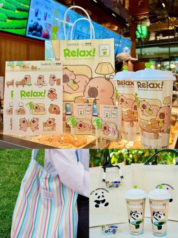 奈雪在东南亚市场的成功并非偶然,是其品牌实力、产品品质与精准战略布局的综合体现,更离不开品牌对本土消费偏好的深度洞察。产品研发上,既保留招牌产品的高品质,又融入当地口味,奈雪马来店所有产品原料都是清真友好食品,充分尊重当地饮食习惯。同时,通过特色周边与IP联名抢占年轻消费者心智:豚豚崽联名、清迈定制主题包等周边成为社交货币,并与GrabFood等当地外卖平台深度合作,构建“到店体验-外卖便捷-社交裂变”的消费闭环。