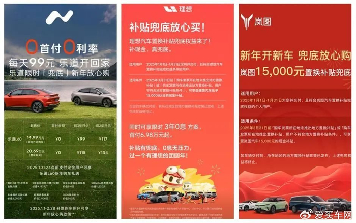 众所周知,2024年后以旧换新和报废更新“双新”补贴活动已经结束,原则上消费者在2025年买车会比去年更贵。然而车企为了进一步刺激消费者的购车欲望和提升品牌销量,刚跨入2025年便推出多种购车政策,涵盖了现金优惠、金融补贴、保险补贴、置换补贴等多种形式。