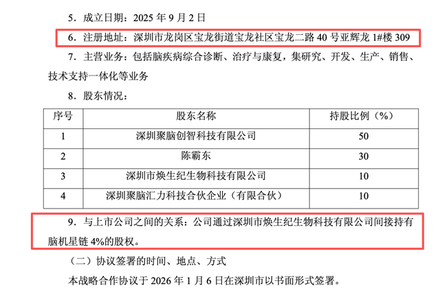 证券时报·e公司记者关注到,脑机星链注册地址位于深圳市龙岗区宝龙街道宝龙社区宝龙二路40号亚辉龙1#楼309。而地图显示,该地址为“亚辉龙科技大厦”。