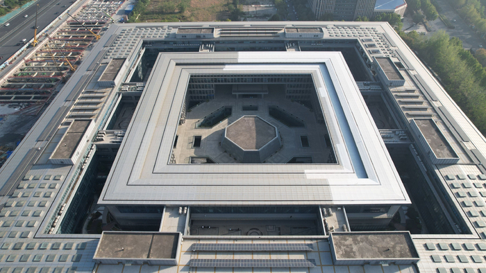 2022年9月29日,航拍合肥要素大市场,位于滨湖新区徽州大道西侧,紧邻滨湖会展中心,规划中的要素大市场占地172亩、建筑面积34万平方米,投资10亿元,项目将打造安徽乃至中国东部最活跃的综合要素大市场。