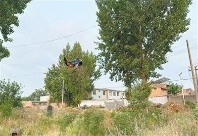 西安市鄠邑区渭南村,一只燕子挂在了捕鸟网上。