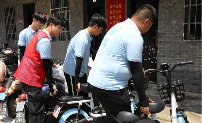 在三宝村,实践团成员们走进多个路段,将乱停放的电动车、共享单车归位,用心尽力将每辆车摆放整齐,维护村落的整洁环境,受到村民们的好评。除了动手整理车辆,遇到正在随意停放车辆的游客,实践团成员也主动上前进行劝导。