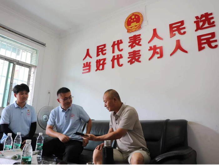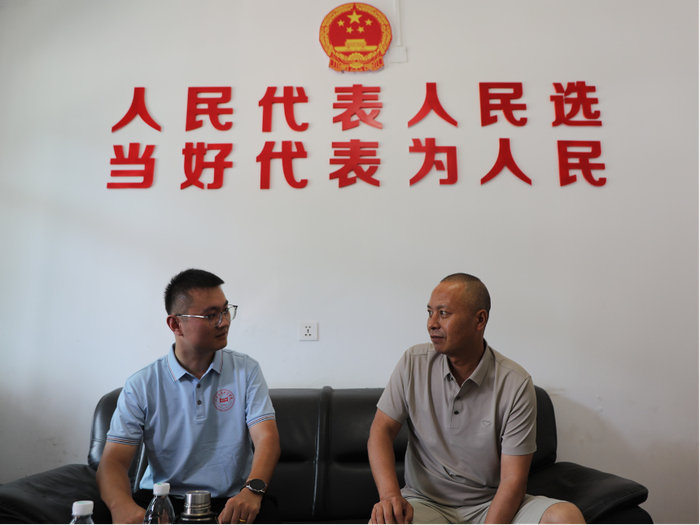 图为实践团成员们与村支书交流讨论