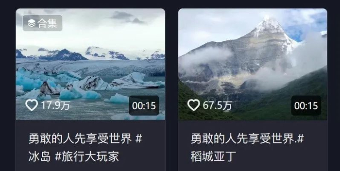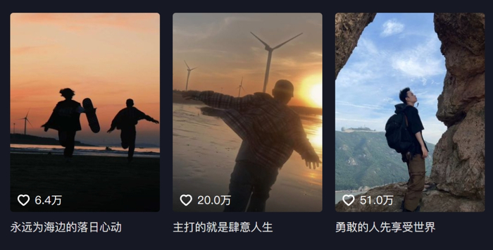 估计许多人看到“勇敢的人先享受世界”文案的瞬间,脑海中就能浮现出它所对应的视频模板:
